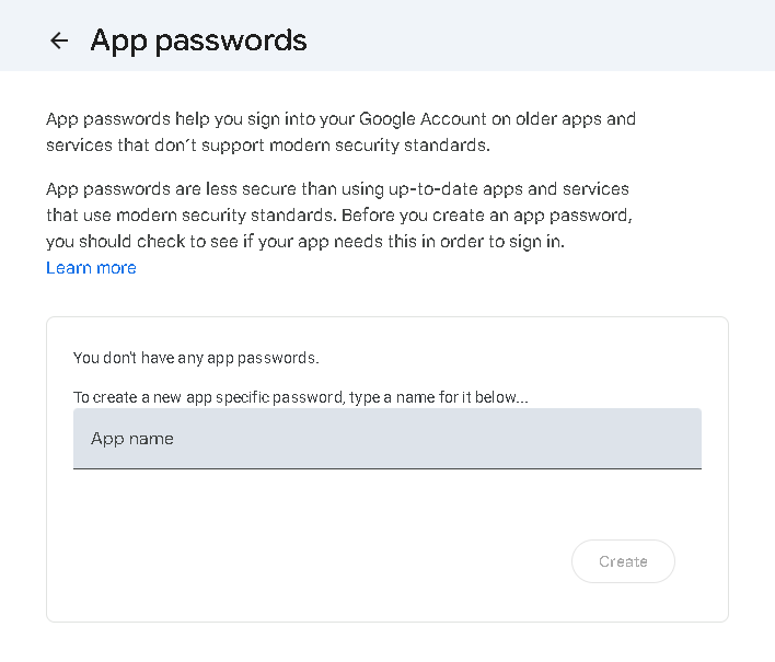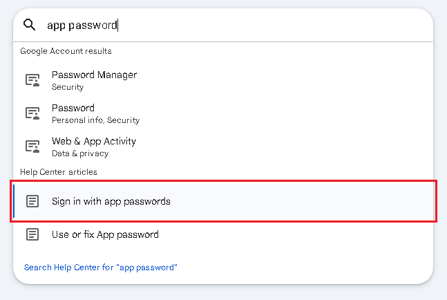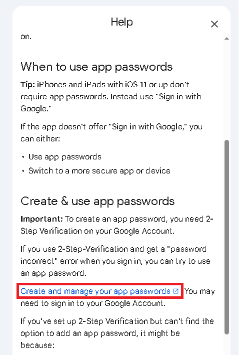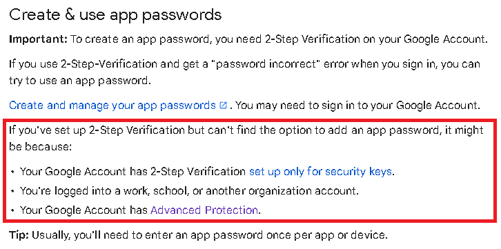5. If app passwords is not available for your account, may refer to the following information under Help Center.