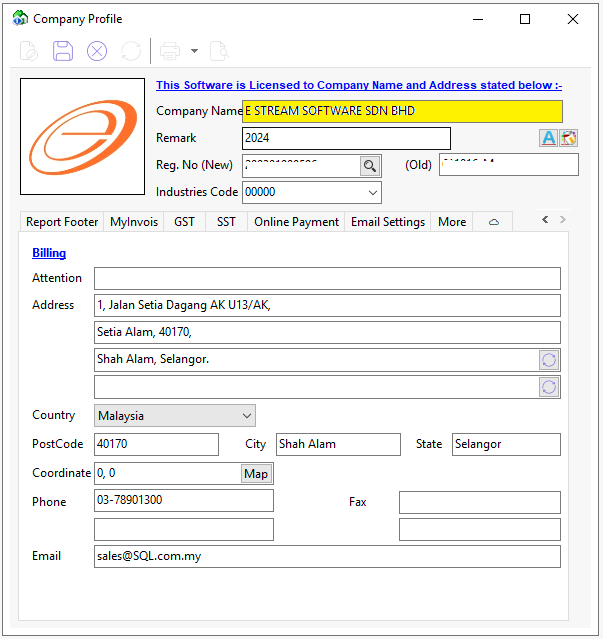 8. If Company Name is highlighted in yellow color, it means register successful.